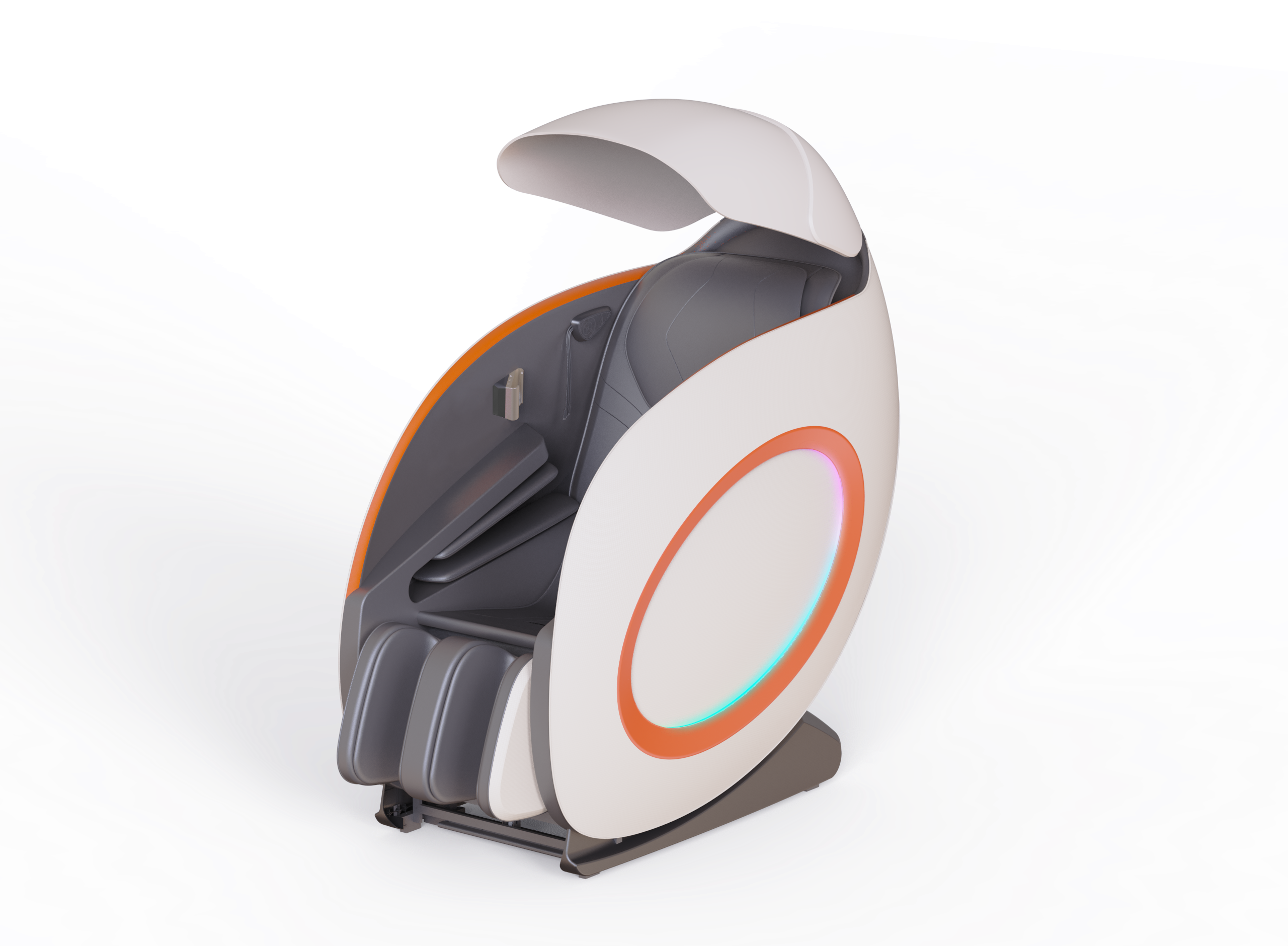 3D“蛋”形的外观设计理念,蛋壳形以其圆润、坚固而细腻的构造,常被视为安全与保护的象征。其紧密贴合的结构仿佛一道天然的屏障,让人联想到稳固的避风港,从而引申出一种心理上的安全感与踏实感。侧板炫彩灯带设计除了吸引客流外,也为整机增添更多趣味性。让用户在享受按摩的同时,也在平凡生活中感受到一些新奇体验。